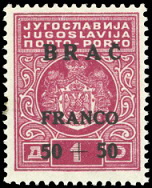 Stoga su korištene marke bivše Kraljevine Jugoslavije, koje su, međutim, morale biti nabavljene u poštanskom skladištu u Cetinju u Crnoj Gori. To nije izazvalo velike poteškoće, jer su ta dva gospodina organizirala tada vrlo oskudno gorivo za svoje privatne potrebe i u Cetinju dobili tražene jugoslavenske marke.