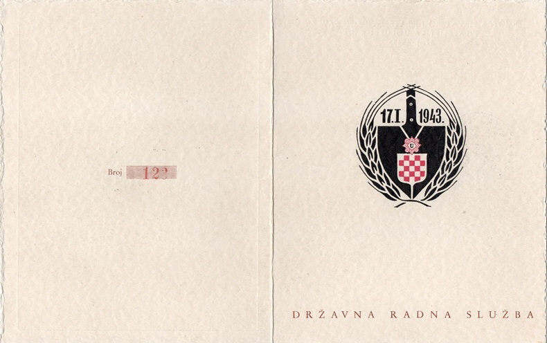 Sa potpisom zapovijednika Državne Radne Službe Dušana Palčića.