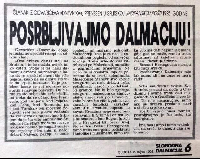 U Dalmaciji - pa tako i u Dubrovniku - ne živi niti jedan takozvani “Srbin”!