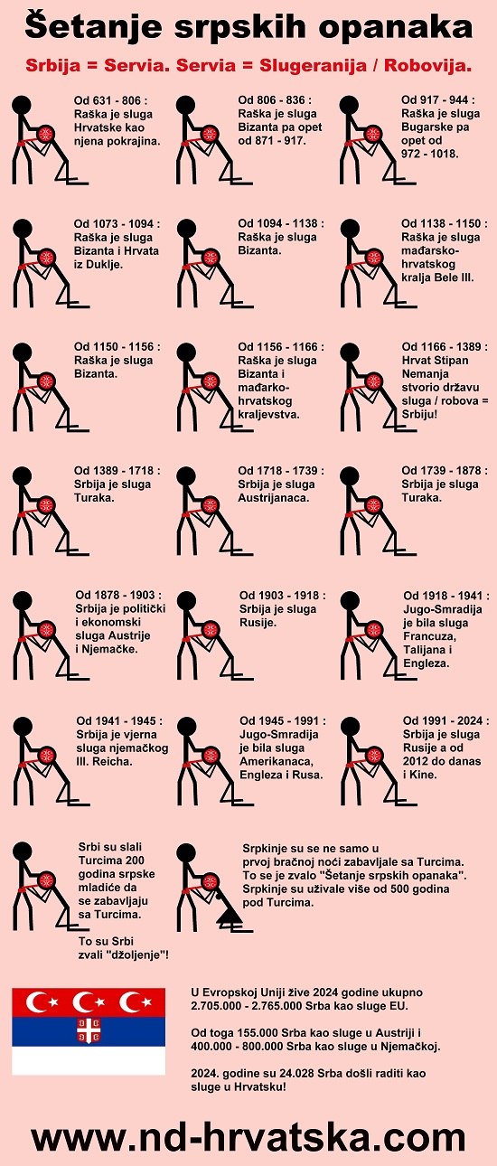 U Hrvatskoj, Bosni i Hercegovini i Crnoj Gori je poznata izreka : “Nema nitko što Srbin imade, pogotovo kad od Hrvata jezik, teritorije i povijest ukrade i uz to još i debelo slaže!”.