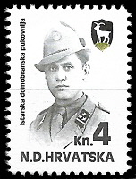 Gore : 1993 godine je HOS izdao dva različita niza maraka. Oba niza su ograničena na 200 komada. Gore vidite prvi niz.