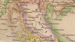 Ime karte : Tabula Rogeriana. Kartograf : al-Idrisi za Roger II. od Sicilije. Zemlja : Italija.