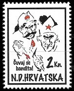 Gore : 1993 godine je HOS izdao dva različita niza maraka. Oba niza su ograničena na 200 komada. Gore vidite prvi niz.