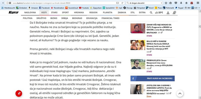 Najveći svijetski laboratorij u Kanadi je potvrdio sa su Bošnjaci, Crnogorci ali i takozvani bosanski Srbi genetski Hrvati :