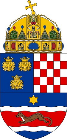 Gore : Grb Trojedine Kraljevine Dalmacije, Hrvatske i Slavonije.