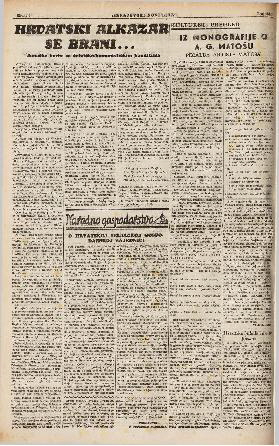 Cijeli je grad bio to jutro u velikom uzbuđenju. Od strojopuščane vatre nije se dalo pomoliti na ulicu. Iznad kuća, po ulicama, čuo se zvižduk neprijateljskih taneta. Svatko je strepio. Znao je, da četnici ne štede ni živote ni obraz niti imanje ljudi. Njima nije ništa sveto. Prisutnost Jakovljevića, Begića i Hadžića ipak je utjecala na smirenje građana. Znalo se je i vjerovalo, da njihova prisutnost osigurava obranu gradu. U njih se imalo neograničeno povjerenje. I nisu se prevarili. Grad je obranjen. I ovaj put je najjača navala bila na sektor satnika Hadžića na kojemu su bili časnici: Vjekoslav Đurić i Ljubomir Delić, koja su obadvojica leže ranjena. Višegrad je još bio u mraku i pod teškom maglom, kada su počeli pridolaziti prvi ranjenici: jedni su dolazili sami, a druge su donosili bolničari, njihovi drugovi. Dolazili su i stariji ljudi: tražili svoje. Tužni su to bili prizori, kada n. pr. stari Karahodža, koji je pred koji dan zakopao sina šehita, dolazi i traži drugoga sina. U bolnici ga nema, a njemu je rečeno, da je donešen. Traži ga u mrtvačnici. Nema ga ni tamo. Tek pred mrtvačnicom odkriva jednog od poginulih i kaže: To je. Moj sin... Da li tu čovjek može da ne posuzi? Stari ipak ne plače. Bošnjak iz doba Ličkog u njemu je inkarniran. Podiže ruke i tiho izgovara Fatihe. Šest liječnika i veliki broj dobrovoljnih bolničarki, već premoreni, u neprestanom su napornom poslu. Taj dan pun magle i oblaka bio je najteži dan u obrani Hrvatskog Alkazara. Ni odakle pomoći! Da bar mogu krilaši! A nebo opet! Ono se i ne vidi. Ipak ima nade. Poznati su naši junaci neba. I zbilja... Kada se već počela gubiti nada, začuje se zvuk motora. Kroz gustu maglu oprezno se je spuštao pilot Marijan Pavlović, zrakoplovni poručnik. Njegov dolazak olakšao je borbu, četnici su izgubili svoju glavnu silu i malo malaksavaju. Povlače se. Naši prelaze u napadaj, četnici su se povukli. Svi časnici ispunili su podpuno svoj zadatak. Jedan od većih zadataka — oslobođenje Međeđe, bio je povjeren nadporučniku Saitu Hašimbegoviću. On je još isti dan mogao javiti zapovjedniku svoje satnije: »Zapovjedniče! Zapovijed je izvršena. Međeđa je u našim rukama«. Mi svi znamo, pod kakvim uvjetima nam je nametnuta borba. Znamo, da je obrana grada bila skoro nemoguća, kao i obrana Alkazara. Ali dobro i sposobno vojno zapovjedništvo, koje je znalo šta treba, i šta se može, kada se hoće, sačuvalo je grad i od njega učinilo drugi Alkazar. Naš Hrvatski Alkazar na Drini! Bilo je žrtava, a bit će ih i još. Ali šta se tu može: »Takva je krvava Krajina, S krvlju ručak, a s krvlju večera, Svak krvave žvaće zalogaje, Nikad bijela danka za odmorka«. Alkazar Hrvata je i sad i uvijek naš. Hvala g. Jakovljeviću, Kneževiću, Begiću, Hadžiću i svim ostalim braniteljima našeg Alkazara. O vašim junačkim djelima pisat ćemo posebno.