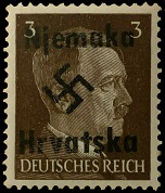 3 Reichspfenniga. Pretisak : Njemaka / kukasti križ / Hrvatska.