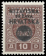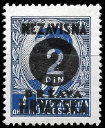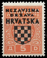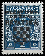 Porto marke Kraljevine Jugoslavije, s pretiskom grba i “Nezavisna Država Hrvatska” u crnoj boji.