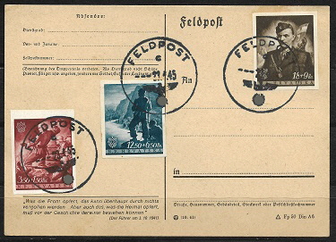 Zajedno s ove dvije vojne marke izdavana je i dopisnica na hrvatskom i njemačkom jeziku. Iako su te dopisnice podijeljene vojnicima, malo je vjerojatno da su bile korištene, jer je u posljednjim tjednima rata poštanska služba potpuno propala. U svakom slučaju, nijedna korištena dopisnica do danas nije poznata.