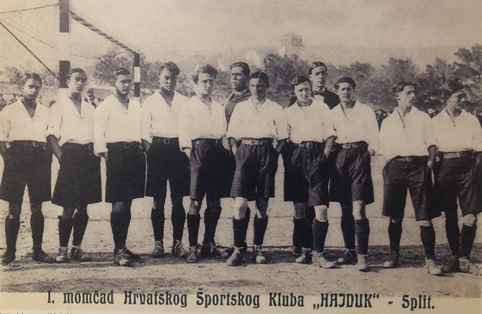 "Hajduk je prvih godina igrao u crveno-plavo-bijeloj (dakle, srpskim bojama, op.a.) kombinaciji, ali je Austrugarska to zabranila pa su igrači Hajduka morali da igraju u potpuno bijeloj opremi."