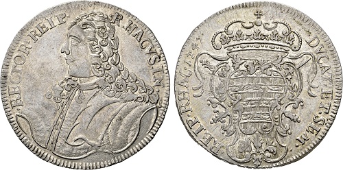 14. Bradan, srebrni novac, 28,97 g., 41-45 mm, kovan 1725 - 1743, Av : DIVINA PER TE OPE, Rv : DVCAT ET SEM REIP RHAG