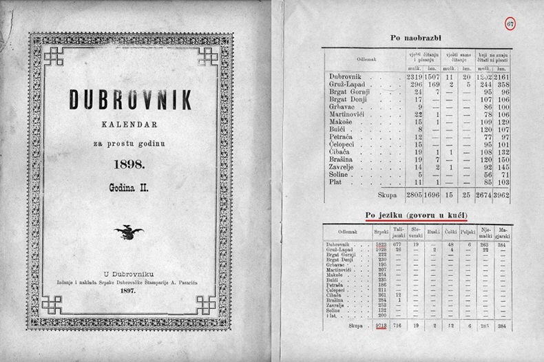 Srbi pišu sljedeće : "U statističkom delu u dubrovačkom kalendaru, pored podataka o broju stanovnika u Dubrovniku i pripadajućim naseljima, između ostalog, može se videti i izjašnjavanje o tome kojim jezikom se govori u kući.