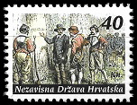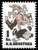 Gore : 1993 godine je HOS izdao dva različita niza maraka. Oba niza su ograničena na 200 komada. Gore vidite prvi niz.