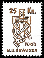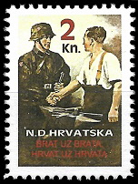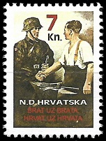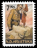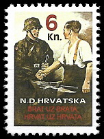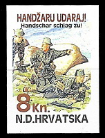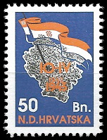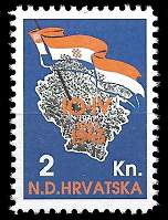 Gore : 1993 godine je HOS izdao dva različita niza maraka. Oba niza su ograničena na 200 komada. Gore vidite prvi niz.