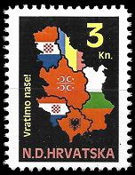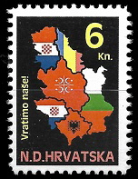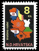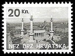 Gore : 1993 godine je HOS izdao dva različita niza maraka. Oba niza su ograničena na 200 komada. Gore vidite prvi niz.