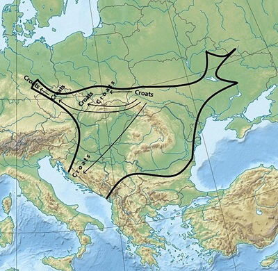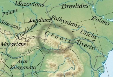 f) Ova Crvena Hrvatska iz Ukrajine je rano ishodište većine južnih ikavskih Hrvata uz Jadran, kao i Crnogoraca.